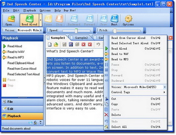 將任何文本轉換成聲音或MP3/WAVE音頻檔的工具。2nd Speech Center是一款