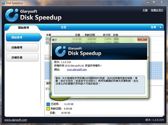 Glarysoft Disk Speedup 1.2.0.319 碎片整理軟體 多國語言綠色單文件版