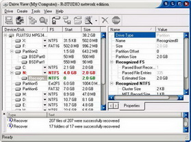 而在Windows NT,Windows2000等作業系統上所使用的NTFS檔系統,R-Stduio亦具有